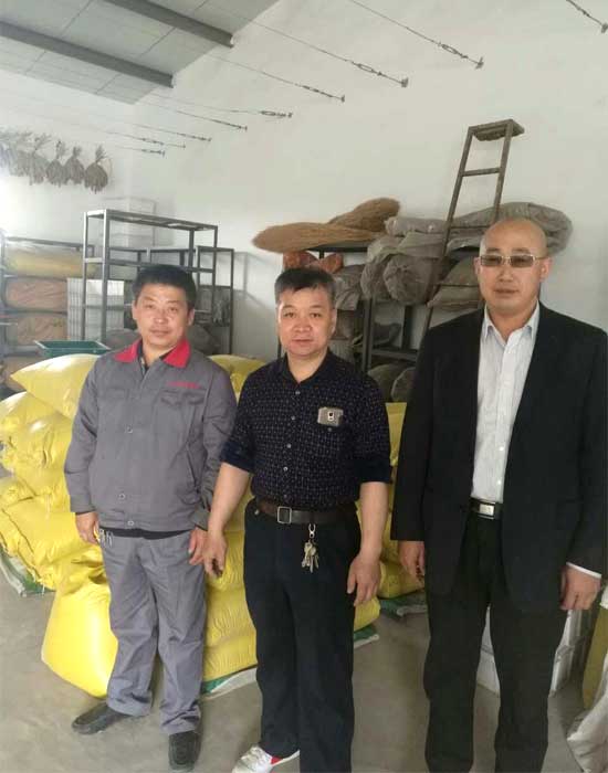 山西省農(nóng)科院楊成元研究員和山花爛漫公司經(jīng)理賀虎平、技術(shù)員賀毛毛挑選有機(jī)谷種時(shí)合影